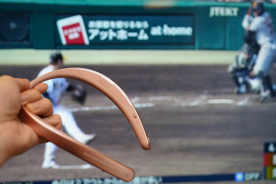 音量操作は「AN-SS1」から出来るのだが、「AN-SS1」側の音量を最大に設定しても小さめ。声は首元あたりでクリアに聴こえるので、例えば深夜の部屋で一人で聴く、別の部屋に迷惑をかけずテレビを見たいという用途では使えるだろう。スポーツ中継や音楽番組といった音の広がりのある番組では、自然な音の広がりを感じられた。なお、テレビにHDMIで接続したPS4の音声も聴けたが、僕の環境では音量不足で迫力のゲーム体験には向いていないが、これはテレビ側の問題だろう。