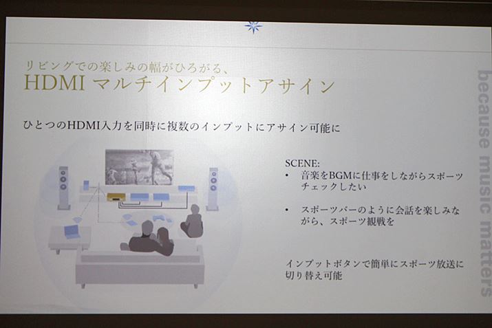 そのほかにも、ひとつのHDMI入力を同時に複数のインプットにアサインできる「HDMIマルチインプットアサイン」など、リビングで楽しめる機能を搭載