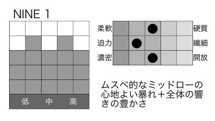 自然というのは、言い換えれば「やや地味」でもあるので、わかりやすい音のNINEのほうが好きという方もいるかもしれません。そこはお好み次第です。