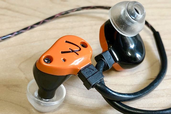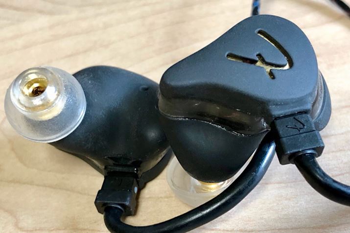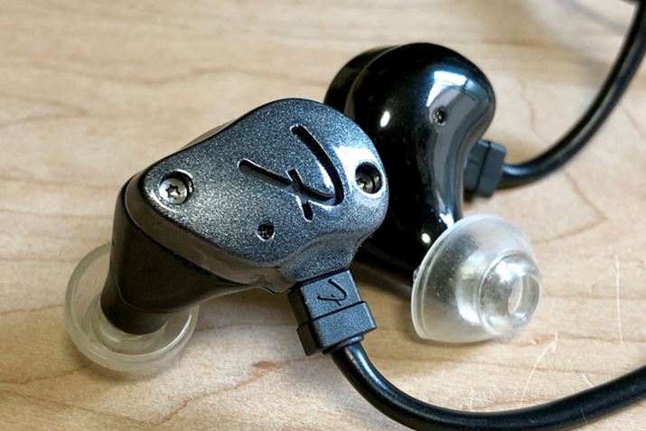 こちらは、発表されたばかりの新モデルです! ハイブリッド構成で高域側を担当するBAドライバーが2基に増えました。「低域ダイナミック+中域1BA+高域1BA」ではなく「低域ダイナミック+中高域2BA」とのことです。前述の通り、ハウジングのサイズや形状はグループ全モデルほぼ共通なのでこちらもフィット感良好!