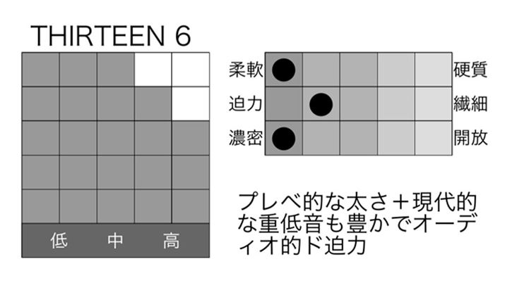 ●THIRTEEN:Precision Bass的にあたたかく豊かな太さと広がりのあるオーディオ的ピラミッドバランス。
