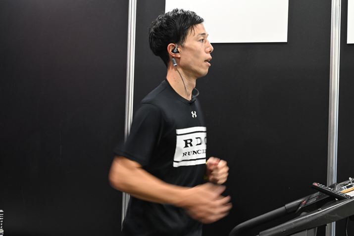 実際に走りながらデモンストレーションを実施。頭が下がってきたり、着地時の衝撃が大きくなってくると、すぐに音声でアナウンスして正しいフォームに導いてくれる