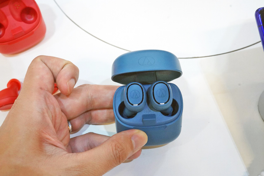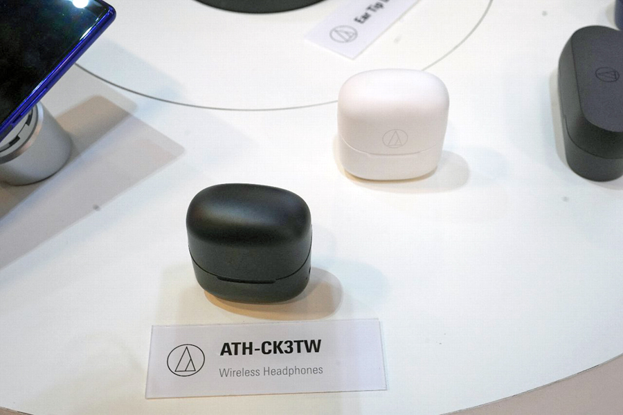 オーディオテクニカは完全ワイヤレスイヤホンの新モデル「ATH-CK3TW」を出展。クアルコムの「TWS+」にも対応する。現行機種から小型化するとともにイヤホン単体で6時間、充電ケースとあわせて30時間再生に対応。価格は99ユーロで、欧州では11月に発売予定。