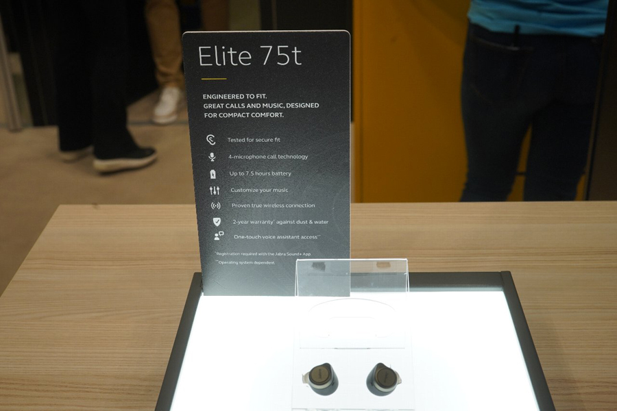 通話機能が強力なJabraからは最新の「Elite 75t」が登場。現行モデルの外見イメージはそのままに、20%の小型化を実現。連続再生時間はイヤホン単体で7.5時間。IP55の防水・防塵性能にも対応する。米国で10月に発売予定だ。