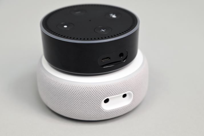 スピーカーがパワフルになったこともあり、第2世代「Echo Dot」と比べると、ベースモデルとなった第3世代「Echo Dot」同様に給電端子がmicroUSBから専用のACアダプターになっている