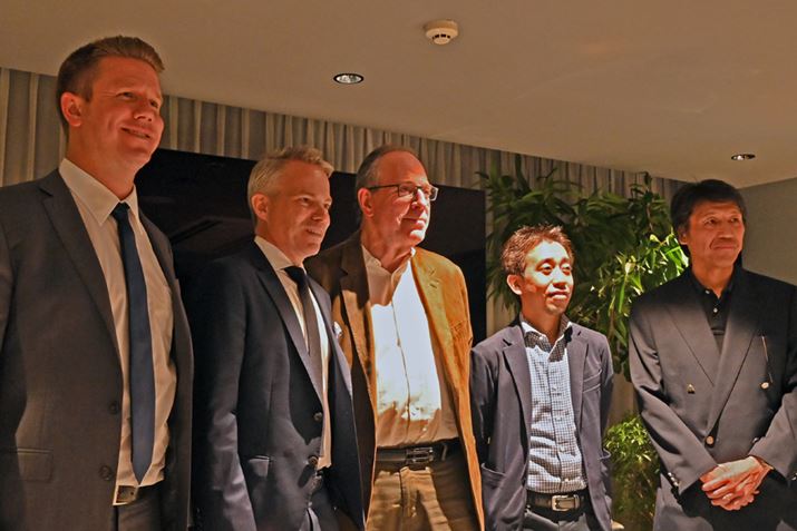 IMAX Enhanced説明会の様子。左から、XPERIバイスプレジデントのジョン・マクダニエル氏、XPERIチーフ・プロダクト兼サービス・オフィサーのギア。スカーデン氏、IMAXシニア・バイスプレジデントのブルース・マーコウ氏、TSUTAYA Digital Entertainment執行役員の山中智裕氏、ソニーホームエンタテインメント&サウンドプロダクツTV事業本部技術戦略室主幹技師の小倉敏之氏
