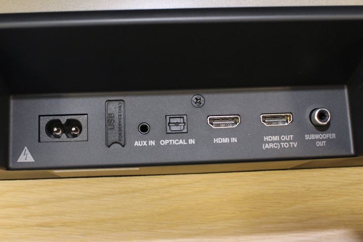 入出力端子はHDMI入出力を1系統ずつのほか、光デジタル入力/3.5mmアナログAUX入力/サブウーハープリアウトを1系統ずつ装備。HDMI端子は4K/HDCP 2.2に準拠し、ARC対応となる