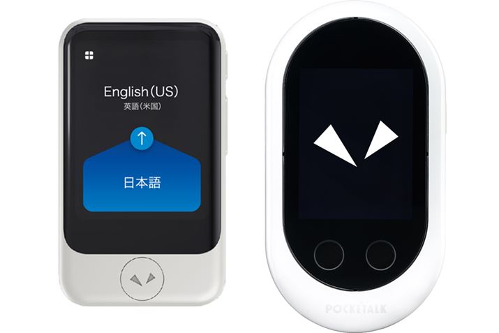 「ポケトーク S」は、74言語で双方向に翻訳できる音声翻訳機。本体のスピーカーに向けて話した言葉を翻訳し、55言語では音声とテキストに、19言語ではテキストに翻訳できる(2019年11月時点)。翻訳エンジンにAIを搭載することで、長文の翻訳にも対応している。なお、前モデル「ポケトークW」(以下、前モデル)では、2019年11月12日のアップデート後に、音声出力可能言語が追加されるという。