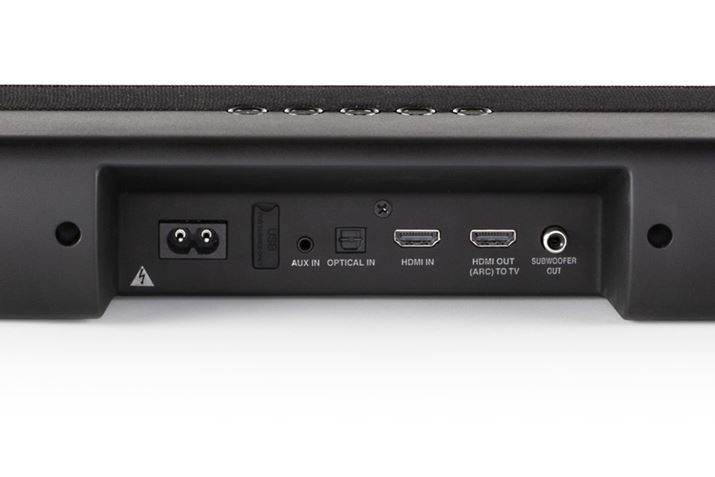 入出力端子はHDMI入力/HDMI出力/光デジタル入力/3.5mmアナログAUX入力/サブウーハープリアウトを装備。HDMI端子は4K/HDCP 2.2に準拠し、ARC対応となる。音声フォーマットはドルビーデジタル/DTS/AAC/リニアPCMをサポート。Bluetooth接続時の対応コーデックはSBCのみ