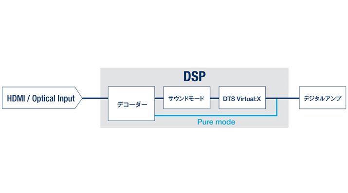 「Pureモード」の概念図。原音への脚色を行わず、ソースの音を可能な限りストレートに再生するよう配慮している