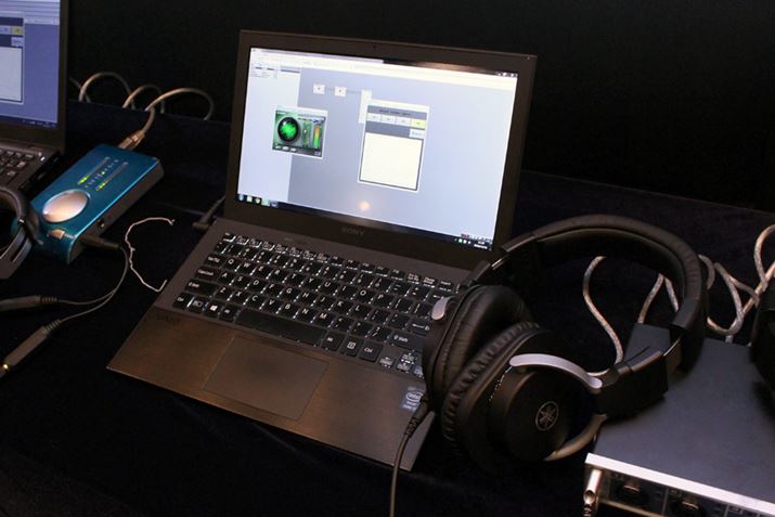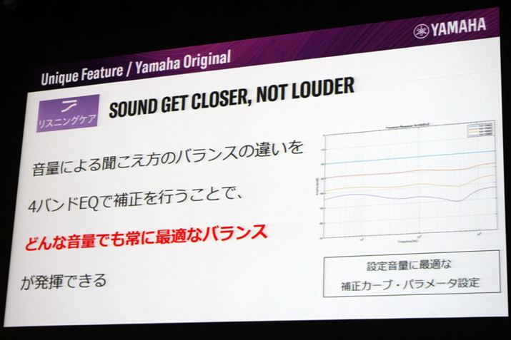 ヤマハ新製品発表会では、「リスニングケア」の技術展示デモも。音量を上下させても、ちょうどよいバランスで低音が聴こえる