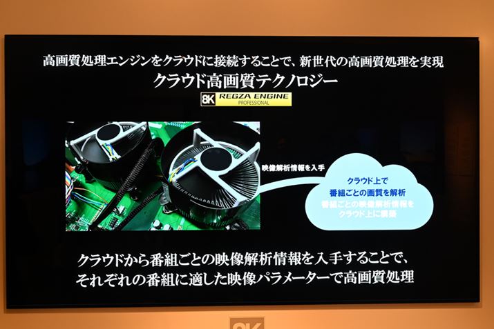 また、高画質処理エンジンをクラウドに接続することで、新世代の高画質処理を実現する「クラウド高画質テクノロジー」を搭載したのも大きなポイントだ。従来のスタンドアローンタイプでもAIによる解析・画像処理は行われてきたが、クラウドからそれぞれの番組に適した映像パラメーターを受け取り、番組に合わせて最適化することで、高画質処理の精度を高められるようになるという。
