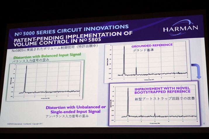 プリメインアンプ「No5805」に実装された、特許出願中というボリューム制御技術。新型のブートストラップ回路により、セカンドディストーションを抑えた