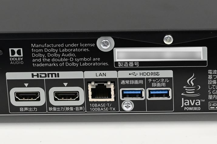 エントリーモデルということで、HDD増設用USBポートは1つのみ。HDMIのセパレート出力も非対応だ