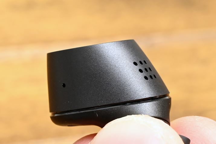 9つの穴が空いている部分に、アクティブノイズキャンセリングや外音取り込みで使用するマイクが内蔵されている