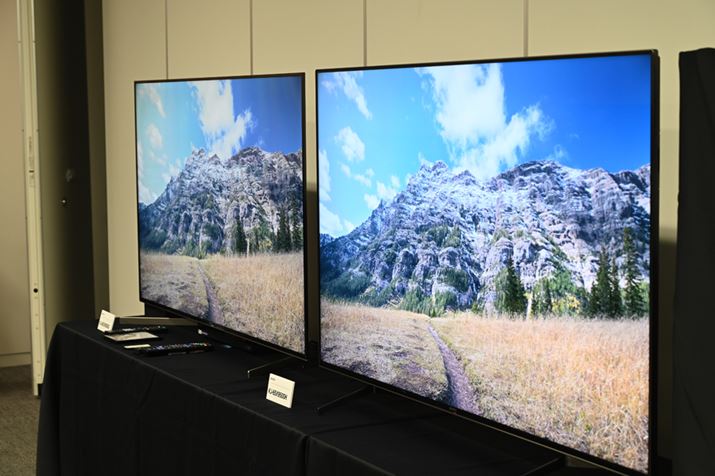 写真手前側が「X-Wide Angle」を搭載した「X9500H」、奥側が「X9500G」。角度を付けて見ると、コントラストの低下が少ないことがよくわかる