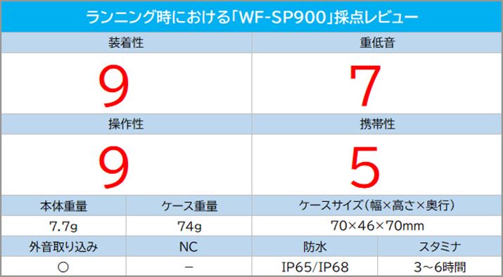 「WF-SP900」は、ソニーの完全ワイヤレスイヤホンの中で特にスポーツ色の強いモデル。水泳にも対応する「IP65/IP68」の防水・防塵性能を備えるうえ、環境音や人の声などの外音を取り込む「アンビエントサウンドモード」も搭載する。
