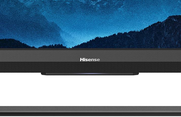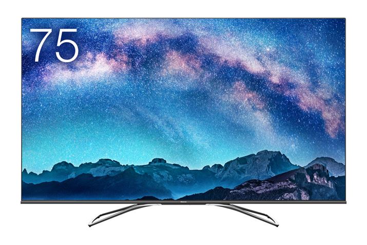 ハイセンス「75U8F」。大画面サイズということで、こちらのモデルのみスタンドデザインやスピーカーデザインが異なる