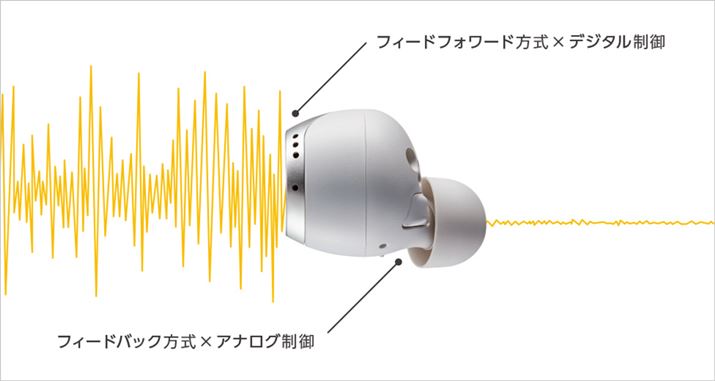 デジタル処理とアナログ処理を組み合わせた独自のアクティブノイズキャンセリング機能「デュアルハイブリッドノイズキャンセリング」システムを採用。精度の高さと遅延の少なさが大きな特徴となっている