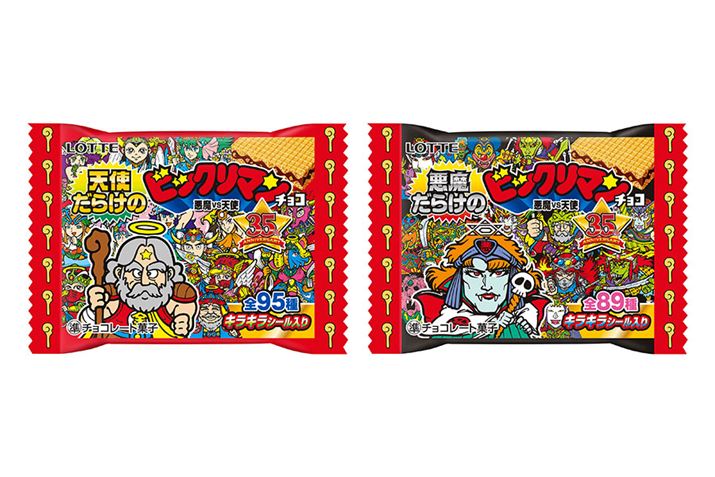 ロッテから、ビックリマンチョコの「悪魔VS天使35周年」を記念し、初めて第1弾〜32弾までの天使だけのヘッドキャラと悪魔だけのヘッドキャラを集めた「天使だらけのビックリマンチョコ」と「悪魔だらけのビックリマンチョコ」が発売される。