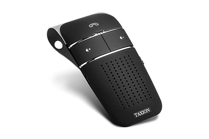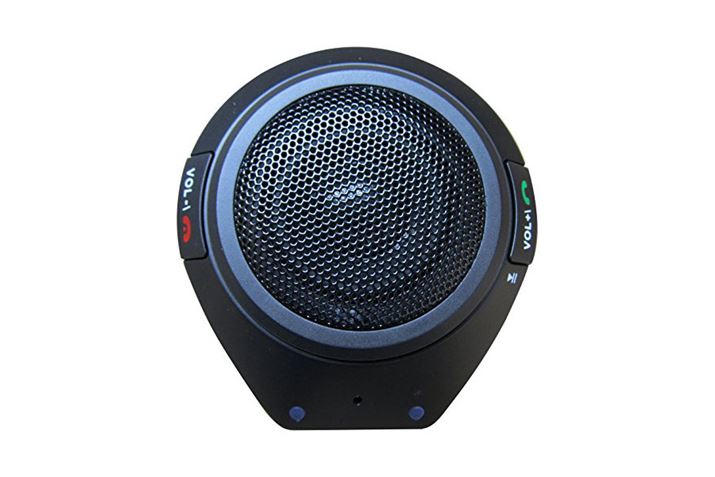 サンバイザーに設置できるクリップタイプの車載専用スピーカー。ノイズキャンセリング機能を利用したハンズフリー通話にも対応する。手持ちのスマホとのBluetooth接続に電源が連動する機能も備えている
