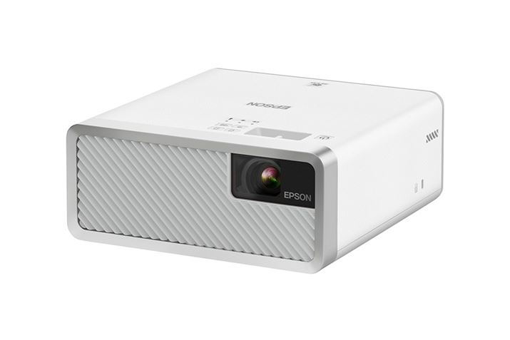 A4サイズの小型筐体で、リビングにも設置しやすいスクエアデザインが魅力のモデル。解像度は1280×800。レーザー光源採用により天井に向けての投影も可能で、2.3mの投写距離で100インチサイズの大画面を実現する。1.35倍のデジタルズームと縦横両方向の台形補正を搭載しており、明るさも2000lmと申し分なく、内蔵スピーカーの音質も良好だ。Android TV端末同梱モデルもラインアップ