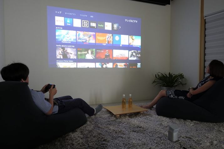 さらに、一部のプロジェクターはAndroid TVなどのOSを内蔵しているものもあり、本体にNetflixやYouTubeのアプリをインストールできる。これならプレーヤー機器すらいらないというわけだ。こういったモデルを使って壁投影すれば、本当にプロジェクター1台だけで、手軽なおうちシアターが実現できるのである。