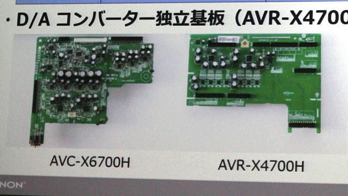 DAC部には、フラッグシップモデルのAVC-X8500Hと同じ32bitのプレミアムDACを専用基盤にマウントする構成で、その性能を引き出すために周辺回路を改良した。また、上述の通りDSP部は、AVC-X8500Hと同じ「Griffin Lite」を採用することにより、演算処理能力をアップさせている。