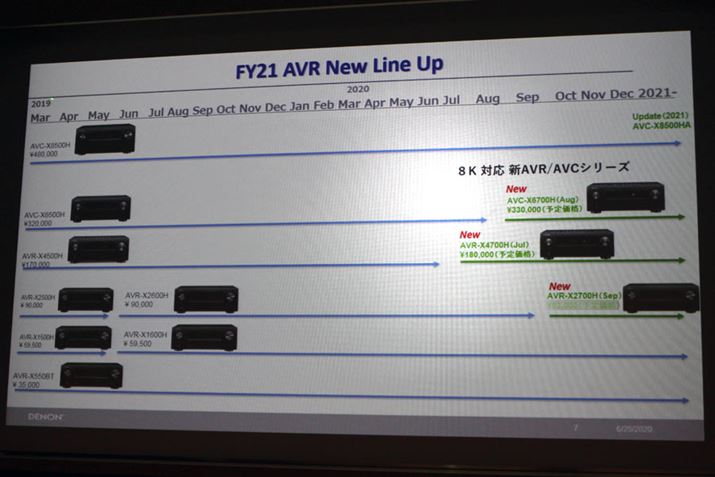 デノンAVアンプの2020年ラインアップ。ハイエンド〜ミドルクラスの3機種が8K対応にモデルチェンジする。さらにフラッグシップの「AVC-X8500H」も8K対応アップデートを予定