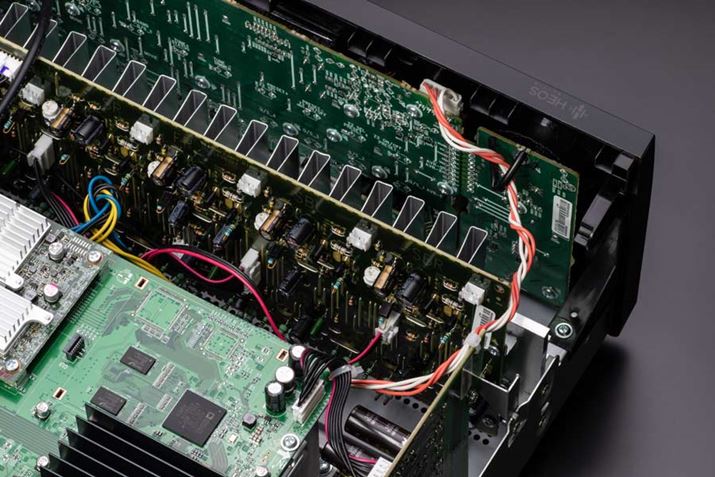 全チャンネル同一構成の7chディスクリート・パワーアンプを搭載。さらに従来モデルから引き続き、電源ラインを2系統に分離する構成で、チャンネル間のクロストークやSN比を改善し、サウンドのフォーカス感を高めている