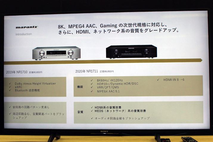 なお、実は従来モデルと比較すると、HDMI入力端子の数が8系統から6系統に減っている。こういった細かい仕様変更により、最新機能に対応しつつも、従来モデルと同じ価格設定を実現。従来モデルのユーザーを見ても、6系統の入力があれば必要十分な場合が多いと思われたことから、同社ではコストダウンして価格を据え置きにする方法を採ったという。