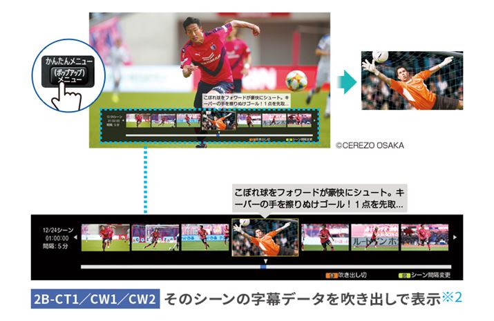 シャープが力を入れている機能が再生せずに番組内容を確認できる「見どころポップアップ」。もちろん4K放送の録画番組も対応する