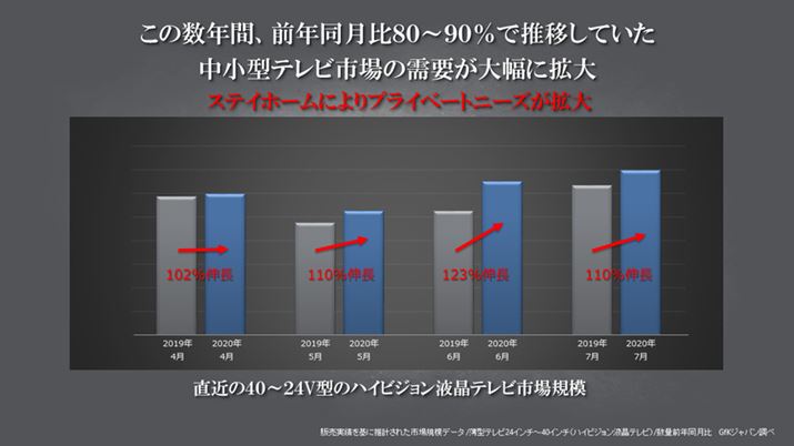 ここ数年、24〜40V型の中小型テレビ市場はシュリンクしていたが、今年は一転して大幅に市場が拡大しているそう
