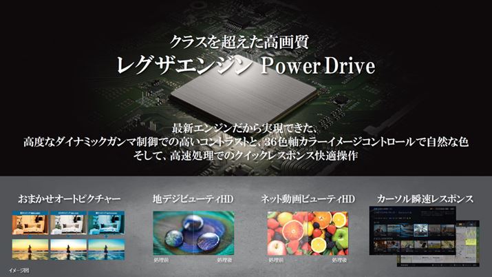 次世代の4Kエントリーテレビ向けに開発した映像エンジン「レグザエンジン Power Drive」を搭載することで、圧倒的な快適操作とフルHD/HDテレビとは思えない高画質を実現したという