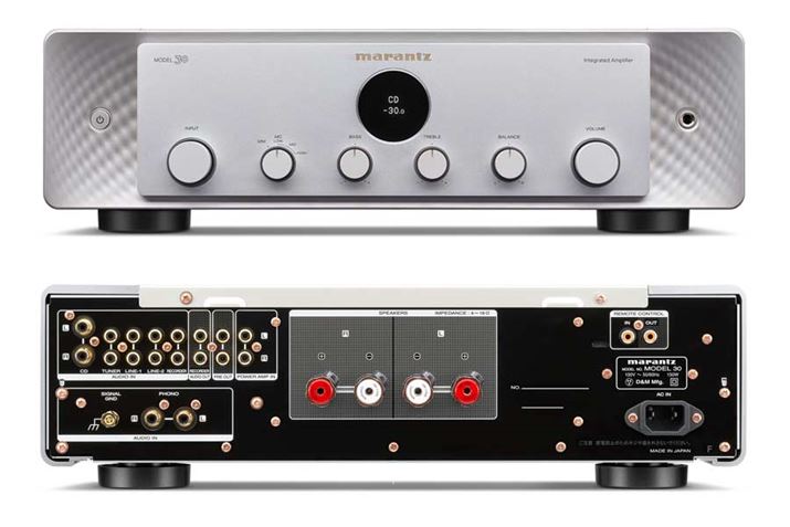 続いて、プリメインアンプのMODEL 30を見ていこう。マランツいわく「サイズの制約から解放された新時代のプリメインアンプ」としてラインアップする1台。アナログアンプとスイッチングアンプをうまく融合させることによって進化しており、プリ部とパワー部で独立したセパレート電源を搭載するといった高品位仕様となる。