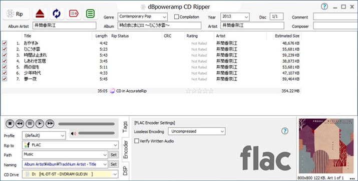 筆者も使用するWindows/Mac対応の高性能リッピングソフト。39ドルで販売されているメディアコンバーターソフト「dBpoweramp Music Converter」に同梱される機能だ。有料版だが、インターネット上にあるデータベースを利用して、エラーなく正確にリッピングされたかを確認できたり、アルバムアートの取得率も高いなど、すぐれた機能を持っている。リッピング時のフォーマットはWAV、FLAC、AIFF、Apple Lossless、MP3等に対応する。