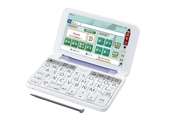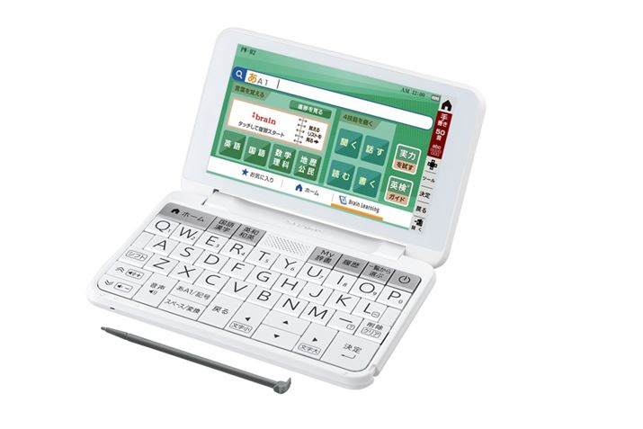 縦型と横型の両方で使える「360度オープンスタイル」が特徴の「Brain(ブレーン)」シリーズ。近年は特に英語学習コンテンツに力を入れており、大学受験で重要となる「聞く、話す、読む、書く」の4技能が強化されています。そのほか、3色のカラーシートを使った「暗記学習」や過去に調べた単語をクイズ形式で出題する「ランダム復習」など、通学中のすき間時間で効率的に学べる機能も豊富。micro USBケーブルを使った充電式で、市販のモバイルバッテリーが使える点も魅力です。