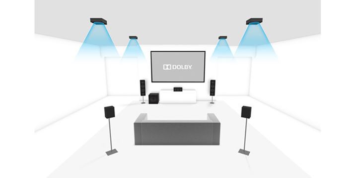 そして、ここから天井に2〜4基のスピーカーを追加設置して5.1.2ch/5.1.4ch環境にすると、Dolby Atmosの3Dサラウンドに対応できる。ただ、実際はリビングの天井にスピーカーを取り付けるのが難しい家庭も多いだろう。その場合は、天井方向に音を出し反射音を利用して3Dサラウンドを再現できる「イネーブルドスピーカー」を利用するという手もある。