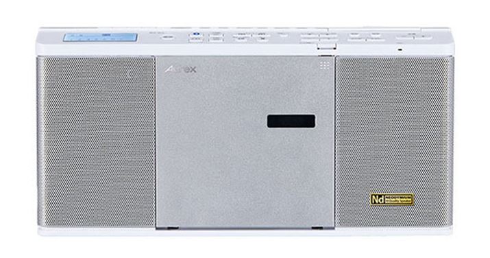 インテリアになじむ洗練されたモダンなデザインが特徴で、さらに高機能性も兼ね備えた一体型コンポ。音楽CDおよびCD-R/RW(MP3/WMA)再生のほか、FMラジオの聴取、Bluetooth再生にも対応している。ワイヤレス充電の「Qi」にも対応しており、本体天面にスマホを置けばワイヤレス充電もできるという便利な1台。