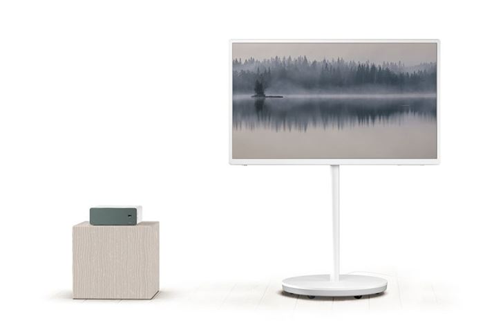 このほか、本体、スタンドともに、リビングに置いても違和感の少ない、白基調のカラーを採用。キャスター付きスタンドを装備したほか、コンセントから外れやすい、マグネット式コンセントが付属する。