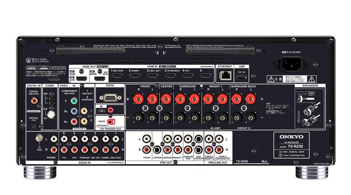 オンキヨーブランドの「TX-RZ50」もディスクリート構成のアナログAB級9chアンプ内蔵機で、「VSX-LX305」同様に内蔵アンプだけで5.1chにオーバーヘッドスピーカーを4本加えた「5.1.4」、または7.1chにオーバーヘッドスピーカー2本を加えた「7.1.2」再生が可能となる。