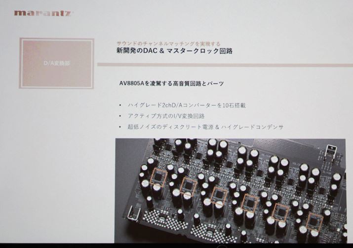 製品説明の前に導入として紹介されたのは、マランツのAVプリアンプの歴史。2008年の「AV8003」を皮切りに2012年の「AV8801」、2015年の「AV8802A」、2021年の「AV8805A」など、世代とともに進化を重ねてきた。