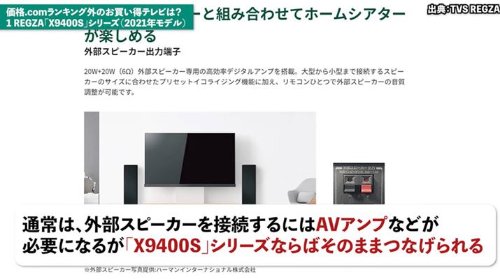 ランキングには入っていないけれども、注目したい製品も紹介しましょう。まずはREGZAの4K有機ELテレビ「X9400S」シリーズです。