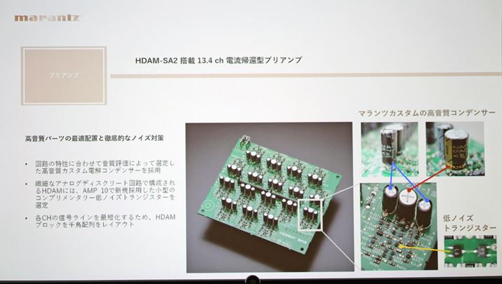 プリアンプ部には「HDAM SA2」(※)を採用。同じ名前でも社内で区別される種類があり、最適化の進んだ「HDAM SA2」であるという