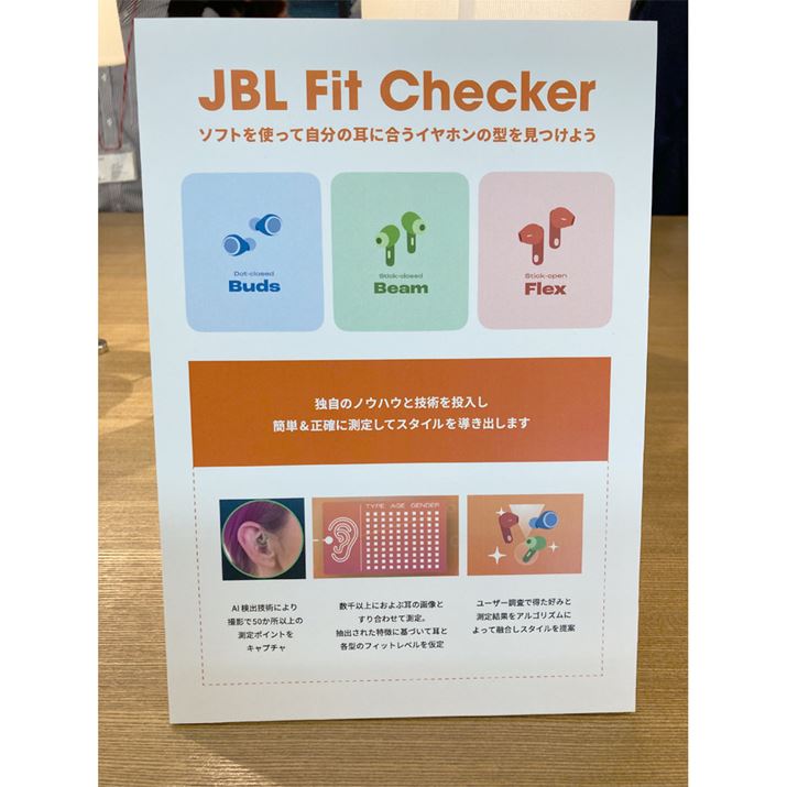 最後に、JBLが提供するサービス「JBL Fit Checker」もご紹介。こちらは1人ひとり耳の形をオンライン・カメラで測定し、その人に最適なJBLのイヤホンシリーズを教えてくれるというもの。耳の撮影と簡単な質問に答えるだけで、「BUDS」タイプか「BEAM」タイプか、「FLEX」タイプの3種類から何が最も自身に合うかを導いてくれます。実際に試してみましたが、簡単操作でわかりやすく、自身のスマホやタブレット、PCから測定できるため、イヤホン選びに困っている人をはじめ、さまざまな人のお役立ちサービスとなってくれるはずです。ぜひ参考にしてみては?