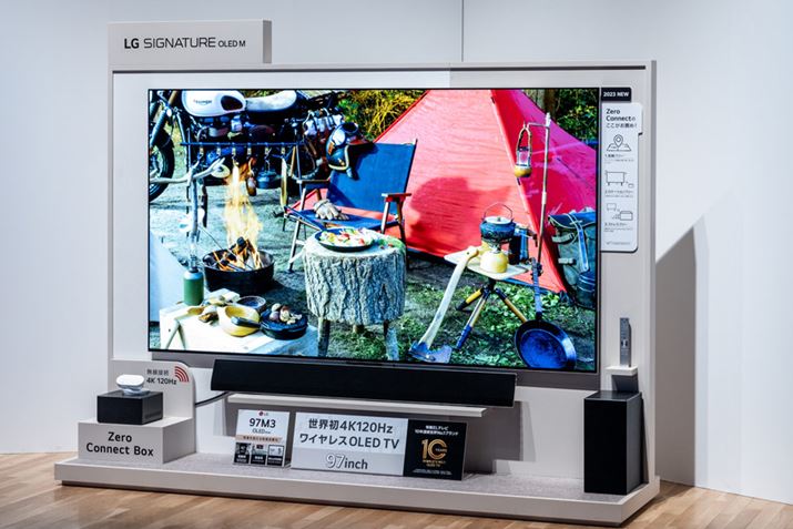 また、同社の対応テレビ(※2022年発売以降の「OLED M/Z/G/C/B/A」「QNED90/85」シリーズ、2022年・2023年の「QNED80」シリーズが対応)と組み合わせることで、テレビのスピーカーとサウンドバー両方を用いたサラウンドシステム「WOW Orchestra」を構築できます。高音域はテレビから、中低音域はサウンドバーから音を出すことで、室内全体に響き渡る臨場感たっぷりな立体的で高品位なサウンドを実現。実際に「WOW Orchestra」をオン・オフ切り替えて聴いてみましたが、特に低音は体内に響くような迫力ある印象でした。
