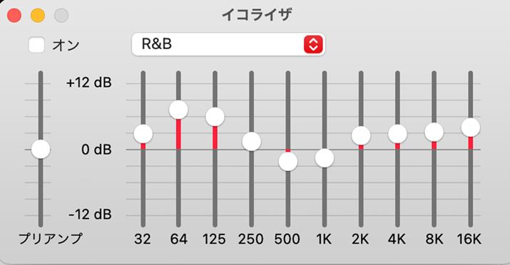 PCをプレーヤーにする場合、アプリのイコライザー(写真のApple Musicの場合は「イコライザ」)を使うのもよいでしょう。音質劣化は少なく、打ち込み系なら「R&B」は過剰ですが「Deep」あたりはなかなか使えました
