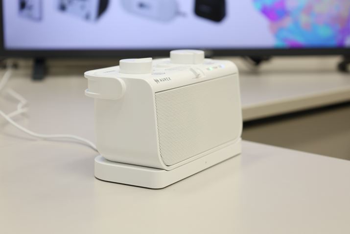 「ミライスピーカー」や「ミライスピーカー・ミニ」はさらに音が部屋中に広がるように設計されていることがポイントだった。「手元スピーカー」は再生周波数帯域を最適化するほか、音を広げるのではなく聴取する人間に音源(スピーカー)を近づけることで音の聞き取りやすさを確保しようとするもの。なかなか力技めいた製品企画だ。