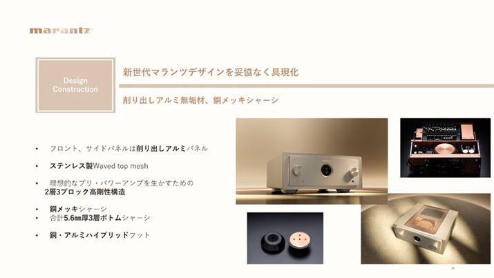 パワーアンプ部を共同開発したPURIFI社は若い会社だが、創業者/CTOのBruno Putzeys氏はフィリップスに在籍し、その後HypexでNcore(アンプモジュール)を開発したという経歴の持ち主。マランツはかつてフィリップスグループだったため、そのときから関係性のある人物とのコラボレーションだったという