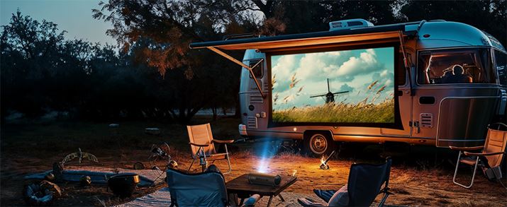 まず特筆すべきは、持ち運べるポータブルプロジェクターとして、異例の大容量バッテリーを搭載していること。容量は10,000mAhで、最大4.5時間もの映像再生が可能(「省エネモード」時)だ。バッテリー内蔵プロジェクターのメリットは、さまざまな場所に持ち運んで使えること。電源ケーブルも必要ない完全ワイヤレスで使えて便利なだけでなく、キャンプなどのアウトドアシーンでも大容量バッテリーの搭載は役立つだろう。